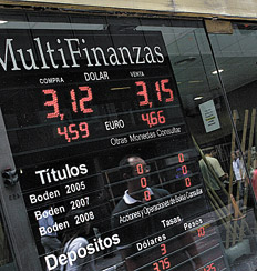 La crisis financiera volvió a abrir una oportunidad para hacer negocios. Mientras que las bolsas del mundo se derrumban, el gobierno argentino anuncia una nueva recompra de títulos para aprovechar los bajos precios a los que se hundieron esos papeles. Ayer, las acciones de empresas líderes operaron con leves ganancias, mientras los bonos cayeron más de 2 por ciento, lo que disparó el riesgo país a más de 1000 puntos básicos, la mayor marca desde la reestructuración de la deuda en 2005. En la plaza cambiaria, el dólar requirió la lupa del Banco Central para evitar una nueva apreciación. La divisa al público se negoció en 3,15 pesos, mientras que las reservas internacionales del Central se incrementaron hasta 47.065 millones de dólares.