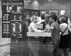 La jornada de ayer también estuvo marcada –según reconocieron desde el Central– por la baja de los títulos públicos, cuyos tenedores se pasaron al dólar. Los bonos abrieron con fuertes bajas del orden del 5,5 por ciento. El Discount en pesos cayó 5,3 por ciento, hasta los 85 pesos. El Boden 2012, 2013 y el Bonar 7 perdieron 6,5 por ciento. El total negociado fue de 230 millones de dólares.