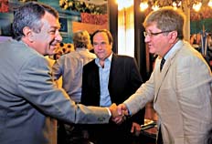 El ministro de Agricultura, Norberto Yauhar, mantuvo ayer una reunión con el presidente de CRA, Rubén Ferrero (ambos en la foto), para analizar las consecuencias de la sequía. “La reunión fue muy positiva, ya que dejó en claro la voluntad de diálogo por parte de las autoridades. Somos optimistas, nos vamos con un esquema de trabajo conjunto a futuro para solucionar problemas concretos de los productores”, afirmó Ferrero. El titular de Agricultura también estuvo reunido con las cooperativas lácteas, con los que analizó la actualidad de este sector. Este clima de diálogo se contrapone con la actitud de la Federación Agraria, entidad liderada por Eduardo Buzzi, que ha optado por una posición más dura. “Con las dudas, postergaciones e indecisiones del ministro (Yauhar), se les está dando el tiro de gracia a los chacareros”, sostuvo la entidad a través de un comunicado que llevó la firma del director Jorge Solmi.