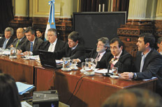 El secretario de Coordinación Interministerial, Mario Quintana, el titular de la AFIP, Alberto Abad, y el director ejecutivo de la Anses, Emilio Basavilbaso, expusieron ante el plenario de comisiones de Trabajo y Previsión Social, Presupuesto y Hacienda y Coparticipación Federal y Economía Nacional. El debate tuvo lugar seis días después de la media sanción en Diputados, con 162 votos a favor, 76 en contra y 3 abstenciones. Entre los votos positivos se registraron siete de diputados del Frente para la Victoria. La intención del oficialismo es firmar dictamen de la iniciativa hoy para que se trate en recinto el próximo miércoles.