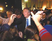 Doce intendentes del conurbano, José Luis Lingeri, Hugo Moyano, Julio De Vido, Felipe Solá, Jorge Telerman y unas dos mil personas muy eufóricas en la puerta de la Casa Rosada dieron marco al acto en que Néstor Kirchner lanzó formalmente Agua y Saneamientos Argentinos (AYSA), la empresa estatal que reemplazó a Aguas Argentinas. Fue ayer por la tarde en el Salón Blanco. El Presidente fue el último orador y después salió a la calle a saludar a los manifestantes de organizaciones piqueteras y del sindicato Obras Sanitarias. Previamente, el secretario de Obras Públicas, José López, anunció un plan de obras por un total de 205 millones de pesos para resolver el problema de los nitratos en el agua en los barrios del sur de la provincia y para extender la red de agua y cloacas.