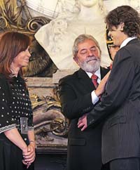 Cristina Fernández repitió ante Lula una frase ya dicha ante Hugo Chávez, jefe de gobierno venezolano, pocas semanas antes: “Energía y alimentos serán la clave del desarrollo”. Fue durante el almuerzo en Cancillería, con lo cual le dio el pie más conveniente al eje del discurso que un par de horas después elegiría Lula en el Congreso.