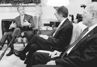 Los líderes demócratas le ofrecieron el apoyo del partido. “Tenemos que estar juntos en Estados Unidos para apoyar la vía diplomática y la militar, si es necesaria, para resolver el problema”, declaró el líder demócrata de la Cámara de Representantes, Dick Gephardt. Pero detrás de la solidaridad aparece un cálculo político. Las elecciones del 5 de noviembre están cada vez más presentes en la capital norteamericana: el lunes y el martes, más que tratar con asuntos geopolíticos o bélicos, Bush estuvo reuniendo fondos para los candidatos republicanos en Iowa y Tennessee. Y la base del cálculo demócrata ha cambiado dos veces durante la semana pasada: primero, cuando Bush pareció haber ganado la partida en la Asamblea General de la ONU, y segundo el lunes, cuando el ofrecimiento de Irak confundió a la opinión mundial.