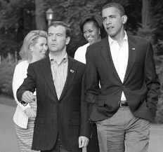 Obama anunció que tiene la intención de ser el anfitrión de una cumbre global el año que viene para combatir la proliferación nuclear, la mayor amenaza a la seguridad mundial, y dijo que él y Medvedev habían discutido un plan para que Rusia pueda ser el anfitrión de la siguiente reunión. Eran todas sonrisas cuando Obama llegó a la cumbre que continúa hoy. “Decidimos relanzar las relaciones ruso-estadounidenses para cooperar más efectivamente en áreas de interés común”, dijo Obama en el Kremlin.
