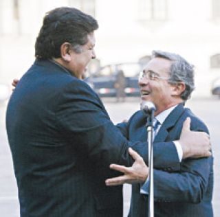 EL MUNDO › EL MANDATARIO COLOMBIANO SE REUNIó CON SU PAR DE PERú, ALAN GARCíA