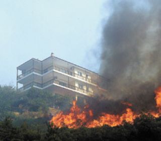EL MUNDO › LLAMAS DE VEINTE METROS DE ALTURA A SóLO QUINCE KILóMETROS DE LA CAPITAL DE GRECIA