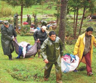 En Misiones ayer la lluvia no se detuvo en ningún momento y acompañó, entorpeciendo, los operativos que las brigadas realizaban para acercar ayuda a los pobladores de los parajes más afectados por el tornado del martes. El relevamiento de las pérdidas siguió adelante, mientras el jefe del escuadrón de Gendarmería Nº 12, destacado en la zona, Raúl Bauvano, afirmaba que, según los reportes de los 70 efectivos desplegados en el lugar, “ya no quedan personas desaparecidas”. Un hombre de 49 años y un chico de 13 fallecieron en la tarde, a pesar de la asistencia médica, con lo cual asciende a 11 el número de muertos. En la tarde de ayer todavía había 16 víctimas internadas (dos de ellas en terapia intensiva) en Eldorado y 3 en San Pedro. Pasado el mediodía, la presidenta Cristina Fernández arribó a la provincia y, tras cambiar sus planes de sobrevolar áreas de desastre porque el clima lo impedía, recorrió por tierra parte de la provincia para llegar a San Pedro. El ministro de Salud, Juan Manzur, quien pasó la noche del martes en la zona afectada, continuó coordinando la asistencia en Eldorado.