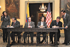 Para cumplir lo prometido, el gobierno colombiano hizo público el texto del acuerdo de cooperación militar que firmó con Estados Unidos el viernes pasado y que tiene en polémica al continente. Según el canciller colombiano, Jaime Bermúdez, “el acuerdo se basa en el total respeto a los principios de igualdad soberana, integridad territorial y no intervención en los asuntos internos de otros estados”. Sin embargo, pocos le creen y el clima en la región latinoamericana es de tensión, sobre todo para Venezuela, pues tras el nuevo acuerdo Colombia permite a Estados Unidos en territorio local el ingreso de más centenares de militares y contratistas y la ocupación de siete bases militares ubicadas a lo largo y ancho del país. Al conocer el texto, el ex presidente cubano Fidel Castro se sumó a la larga lista de críticas al tratado y lo calificó como “atroz”, señalando que contiene “cláusulas expansionistas”.