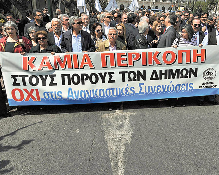 Protesta de empleados municipales frente al Ministerio del Interior en Atenas.A Grecia y a la administración de George Papandreu se les acaban las opciones. Como era previsible, las promesas de ayuda por parte de los estados miembros de la Unión Europea no fueron suficientes para calmar a los mercados. Ahora las negociaciones en Bruselas ya no giran en torno de si un rescate será necesario o no, sino a las condiciones de dicho rescate. El jueves las tasas de interés treparon a un monto prohibitivo de 7,51 por ciento –un record histórico para la eurozona–. Grecia necesita 53 mil millones de euros este año para cubrir sus gastos. De dicho monto, 16 mil millones son necesarios antes del fin de mayo, fecha en que se vence una parte de su deuda.