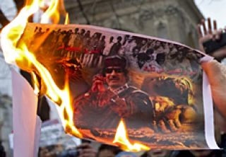 “Voy a ver a los jóvenes a la plaza sólo para demostrar que estoy en Trípoli y no en Venezuela”, señaló el líder libio al final de una jornada marcada por la violencia. La gente resistió y quemó edificios gubernamentales.
