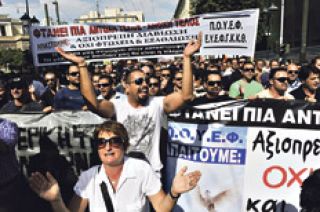 El gobierno planea el despido de unos 30.000 empleados públicos en un programa de ajustes que prevé un ahorro de otros 6500 millones de euros en los próximos meses. Grecia depende de las ayudas de la Eurozona y del Fondo Monetario Internacional, que decidirán en breve sobre la concesión del siguiente tramo del paquete de rescate al país heleno. Los créditos tienen como condición un duro programa de ajustes. Los principales sindicatos griegos, que representan a cerca de la mitad de los cinco millones de trabajadores que hay en el país, realizaron numerosas huelgas desde que Atenas pidió a la UE y el FMI un rescate de 110.000 millones de euros el año pasado. Tras la jornada de ayer convocaron a una huelga general para el próximo 19 de octubre. Serán de esta partida sindicatos de la Policía, Bomberos y la Guardia Costera. Se sumarán además empleados de empresas de servicios públicos a punto de ser privatizadas, como los trabajadores de los puertos de Pireo y Salónica y los de la Corporación Eléctrica Pública.