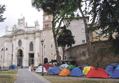 Son unos cincuenta por ahora. Colocaron sus carpas en la explanada de la Iglesia de la Santa Cruz en Jerusalén de Roma, a unos pocos cientos de metros de la plaza de San Juan de Letrán, donde el sábado se desencadenaron los enfrentamientos entre policía y jóvenes armados de adoquines y palos, durante la manifestación mundial de los indignados.