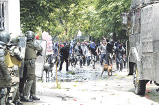 La jornada se vislumbró dura desde temprano. Ya a las siete y media de la mañana, un grupo de veinte personas prendió neumáticos en La Alameda, la principal avenida de Santiago, frente a la calle Arturo Prat. A un costado del Instituto Nacional (el principal liceo público del país) y de la Casa Central de la Universidad de Chile. Atentos, los carabineros reaccionaron de inmediato con la presencia de personal de las Fuerzas Especiales y de “guanacos”, los carros hidrantes.