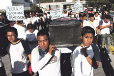 El gobierno mexicano responsabilizó a policías del estado de Guerrero por la muerte de dos estudiantes, durante una protesta en la que un grupo de alumnos fue reprimido en el municipio de Ayotzinapa. Por el violento desalojo a la manifestación estudiantil, tres funcionarios tuvieron que dejar sus cargos, cese laboral anunciado por el gobernador, Angel Aguirre Rivero, y diez policías fueron detenidos, después de que las organizaciones sociales denunciaran el exceso policial. El vocero de la Secretaría de Seguridad Pública Federal (SSP), José Salinas, aseguró que, según los peritajes realizados hasta el momento, los autores de los disparos que causaron la muerte de Jorge Alexis Herrera Pino y Gabriel Echeverría de Jesús –estudiantes de la Escuela Normal Rural Raúl Isidro Burgos de Ayotzinapa que el lunes cortaban la autopista México-Acapulco, junto a varios compañeros, en reclamo del reinicio de las clases, suspendidas hace un mes y medio por el nombramiento de un polémico director y el aumento de la matrícula escolar de 140 a 170 plazas para el próximo año– fueron policías de ese estado.