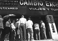 El martes por la noche, Chávez había anunciado las nuevas medidas económicas en su primera presentación pública luego de las declaraciones de Soto. En esa ocasión no hizo mención al militar rebelde. Se ocupó de detallar las medidas de ajuste con las que piensa contrarrestar el efecto negativo que generará el menor ingreso de divisas provenientes del petróleo, cuyo precio se redujo de 18,5 dólares por barril a 16. Ayer comenzó la libre flotación cambiaria luego de cinco años de un sistema de fluctuación entre bandas. El bolívar sufrió los efectos de una abundante y nerviosa demanda de dólares y cerró el día con un desplome de 19,2 por ciento frente al dólar, lo que se sumó al 3,3 por ciento de depreciación la semana pasada. Según los datos del Banco Central, el bolívar cerró a 980/981 unidades por dólar, 188 bolívares más por dólar que en el cierre del viernes, última jornada hábil antes del feriado de carnaval. Al mismo tiempo la consultora Standard and Poor’s calculó que la fuga de divisas fue de 700 millones de dólares en sólo tres días, totalizando 3000 millones desde enero.