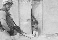 Robert Cargie, un soldado norteamericano, entra en la casa de chapa. Necesita agacharse para cruzar la puerta. Pregunta a la periodista si hay algún problema. En un bolsillo de su uniforme lleva su lista de frases en árabe para resolver cualquier problema que se presente. “Hola”. “Somos americanos”. “¡Conteste a la pregunta!”. “¡No se resista!”. “¡Obedezca mis órdenes!”. “¿Hay algún muerto?”. “No se asusten”. “¡No lloren!”. Y la que mejor pronuncia el soldado: “No nos disparen”.