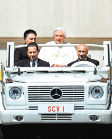 El mayordomo del papa Benedicto XVI, Paolo Gabriele (en la foto, sentado junto a quien conduce el papamóvil), fue interrogado ayer tras ser acusado de filtrar centenares de cartas y documentos reservados. Desde la Santa Sede denunciaron la existencia de una operación para desacreditar a la Iglesia y consideraron que la publicación de los documentos es un acto criminal.