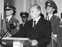 La reforma militar no ha sido aún aprobada por el gobierno, pero Putin se manifestó ayer por la profesionalización de todas las tropas susceptibles de combatir para el 2007 y la reducción del servicio militar a un año en el 2008. Putin anunció que las FF.AA. se equiparán con armas modernas y que las armas nucleares “se reforzarán y modernizarán. Además, hoy ya puedo informarles de que se encuentran en fase de realización práctica los trabajos de elaboración de nuevos tipos de armas rusas, armas de nueva generación, entre ellas las que los especialistas clasifican como estratégicas. Estas armas permitirán garantizar la capacidad defensiva de Rusia y sus aliados por largo tiempo”.