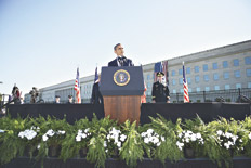 El mandatario dijo que el mundo cambió después de que casi 3000 personas murieran en los atentados con aviones comerciales en el World Trade Center en Nueva York, en el Pentágono y en Pensilvania. Y que a esto le siguieron las guerras en Irak y Afganistán, declaradas por su antecesor George W. Bush. La guerra “es contra Al Qaida” y “no contra el Islam”, aclaró el líder demócrata. “Estados Unidos es hoy más fuerte y más seguro”, dijo, resaltando la muerte del líder islamista que planeó los atentados contra las Torres Gemelas. “La mayoría nunca había oído el nombre Al Qaida. La cúpula de Al Qaida fue devastada y Osama bin Laden no nos volverá a amenazar”, señaló el presidente sobre el líder islamista que planeó los ataques del 11-S. “Algún día en los libros de historia lo que quedará del 11 de septiembre no será ni el odio ni las divisiones, sino un mundo más seguro, más fuerte y más unido”, agregó el mandatario. Previamente, Obama y su esposa Michelle guardaron un minuto de silencio en recuerdo de las víctimas en los jardines de la Casa Blanca y después del acto en el Pentágono ambos fueron al Cementerio Nacional de Arlington, donde visitaron las tumbas de efectivos militares muertos en las guerras de Irak y Afganistán.