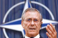 Donald Rumsfeld bloqueó la construcción de una nueva sede de la OTAN en Bruselas hasta que Bélgica deje su ley de justicia universal, mientras EE.UU. conseguía una nueva excepción en la ONU.