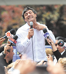Pero no es todo. Sacando a Bachelet de este escenario, a Evelyn Matthei le aparecieron dos fantasmas que día a día se fueron materializando hasta convertirse en una amenaza real de arrebatarle el segundo lugar y el derecho a ir al ballottage. El primero de ellos es Marco Enríquez-Ominami (hijo de Miguel Enríquez, ex líder del Movimiento de Izquierda Revolucionaria, que se enfrentó a tiros con las fuerzas de Pinochet y asesinado por las mismas y que luego sería adoptado por Carlos Ominami, uno de los fundadores de la Concertación). Con ese historial y un discurso frontal, el ex niño terrible de la política chilena ha centrado su campaña en pedir la renovación de los rancios políticos chilenos, aplicando transformaciones reales al modelo imperante. En la elección anterior, logró un 20 por ciento. Tenía 35 años y asestó un golpe a la Concertación que perdió el poder a manos del multimillonario Sebastián Piñera.