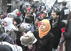 Siria está llena de asedios y bloqueos de ciudades, pueblos y distritos que en algunos casos están produciendo una hambruna masiva. La atención internacional se centra actualmente en la ciudad vieja de Homs, donde hay entre 2500 y 4000 civiles sitiados, junto con varios miles de combatientes rebeldes. Un convoy del Programa Mundial de Alimentos espera el permiso del gobierno sirio para entrar. Dice que no quiere que la ayuda vaya para los combatientes armados de la oposición.