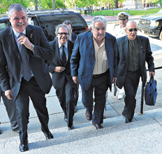 Mujica llegó a Estados Unidos el lunes, donde fue recibido por su par estadounidense, Barack Obama, con quien abordó la ampliación de los intercambios comerciales y otros temas de la agenda bilateral, entre ellos el traslado a Uruguay de algunos presos de la cárcel de Guantánamo. La visita de Estado de Mujica también comprendió reuniones con el vicepresidente, Joseph Biden, y el secretario de Estado, John Kerry; además de encuentros en la Organización de Estados Americanos (OEA) y charlas y conferencias con directivos de centros económicos y medios de comunicación.