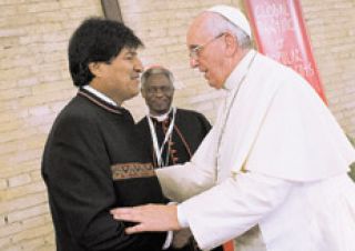 El papa Francisco y el presidente de Bolivia, Evo Morales, coincidieron ayer en criticar, sin muchos tapujos, las injusticias del sistema económico vigente –“aunque algunos puedan criticarme de comunista”, advirtió el Papa–, al participar del Encuentro Mundial de los Movimientos Populares realizado en el Vaticano y promovido por el Pontificio Consejo Justicia y Paz. Ante casi un centenar de organizaciones de campesinos, cartoneros, recicladores, entre otros, de todo el mundo, el máximo exponente de la Iglesia y el único presidente indígena de América latina coincidieron también en la defensa de la ecología y en un rotundo “NO a la guerra”. Es la primera vez que se realiza en el Vaticano una reunión de esta naturaleza, cuyo objetivo es debatir las causas de la creciente desigualdad social y el aumento de la exclusión en todo el mundo y reflexionar sobre las experiencias organizativas de los movimientos populares en la resolución de esos problemas.