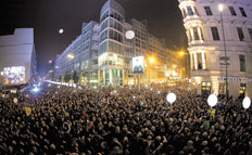 Una marea humana, salpicada por las lucecitas de los celulares que intentaron retratar cada uno de los momentos del conmovedor aniversario, los escuchaba con una mezcla de emoción –especialmente entre los más veteranos que no lograron contener las lágrimas– y la alegría indisimulable de los más jóvenes que trepaban a los árboles y creaban ritmos de percusión con todo lo que tenían mano. A pesar del frío que caló los huesos, la noche fue una fiesta, aun cuando los primeros globos luminosos quedaron trabados, poniendo en duda la conocida perfección alemana.
