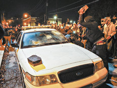 En la ciudad de Missouri salieron a las calles el martes por la noche cientos de personas frente a la presencia masiva de la policía. Pese a ello, la multitud incendió una patrulla policial y rompió ventanas del ayuntamiento de la localidad, situado a las afueras de Saint Louis.