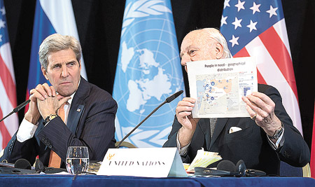 El acuerdo para una tregua humanitaria surgió después de largas conversaciones nocturnas entre Kerry, el canciller ruso Sergei Lavrov y más de una docena de potencias mundiales. Poco después de la medianoche del jueves, Kerry anunció que habían llegado a un acuerdo y establecerían un grupo especial de la ONU para discutir a fondo “las modalidades para el largo plazo y un duradero cese de violencia”. El acuerdo no llegó a ser un alto el fuego completo porque explícitamente excluye a los fundamentalistas y no fue firmado formalmente por el gobierno sirio ni por las principales facciones que luchan en su contra. Kerry advirtió que, en caso de aplicarse, el acuerdo sólo lograría conseguir una “pausa” en la lucha, y que se necesitaría más trabajo para alcanzar un alto el fuego completo.