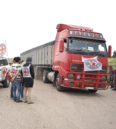 El Comité de la Cruz Roja Internacional informó que los camiones con alimentos y medicamentos entraron en la ciudad de Al Rastan, cercada por el ejército sirio, y a Daraya, una localidad al sudoeste de Damasco.
