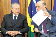 Durante su estancia en Montevideo, Serra se reunió con el presidente uruguayo, Tabaré Vázquez, ante quien insistió con su idea de evitar el traspaso de la presidencia del Mercosur de Uruguay a Venezuela. Nin Novoa dijo en el Parlamento que esa conducta “molestó mucho” a Vázquez. “El presidente se lo dijo clara y rotundamente: Uruguay va a cumplir con la normativa y va a llamar al cambio de la presidencia” del Mercosur, enfatizó. El canciller también consideró en aquella ocasión que Brasil y Paraguay, los dos socios que con mayor energía se oponen a la conducción de Venezuela, manejan argumentos “eminentemente políticos” y tienen el objetivo de “hacer bullying a la presidencia de Venezuela”.