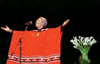 Chavela parece a sus anchas cuando establece un diálogo espontáneo con su público, que le grita: “Te amo, Chavela, quedate a vivir acá, viva la madre que te parió”. “¡Que viva la tuya también, corazón!”, responde ella. Cuesta creer que esta mujer tenga ochenta y cinco años, y vividos de la forma en que fueron vividos. Más por lo que construye que por lo que aparenta físicamente, la cantante es sobre el escenario la anciana sabia que en un gesto de amor ofrenda algo de sí en cada canción. Una sabiduría ganada a fuerza de amores desgarradores, imposibles, dolorosamente profundos. Y de los cuarenta mil litros de tequila que se tomó (el cálculo es exacto y matemático, jura ella), y de todos los valores que subvirtió,y de todos los órdenes que enfrentó, teniendo todas las de perder, siendo mujer, homosexual y pobre en una sociedad de machos y prejuicios.