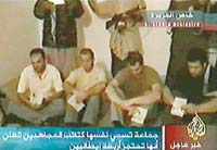 Berlusconi aseguró que se hará “todo lo que esté al alcance del gobierno” para lograr la liberación de los cuatro italianos, aunque el ministro del Exterior, Franco Frattini, informó que no hay negociaciones con los secuestradores. La cadena qatarí Al Jazeera emitió un video de un grupo autodenominado Las Brigadas de los Combatientes Sagrados (Kataeb al Muyahideen) que registra a los cuatro italianos raptados cerca de Faluja cuando entregaban suministros a las fuerzas estadounidenses. Los italianos aparecen en el video sentados en el suelo, con sus pasaportes en las manos y rodeados de combatientes iraquíes, algunos de los cuales estaban armados con fusiles Kalashnikov. Una voz en off pide al “gobierno italiano” que retire sus 3000 tropas de Irak, a la vez que jura “en nombre de Alá continuar la lucha hasta la liberación” de Irak. Se trata del mismo grupo que se responsabilizó de la captura hace seis días de los tres civiles japoneses. Por su parte, el primer ministro nipón, Junichiro Koizumi, instó a su gabinete a hacer lo posible para liberar a tres civiles japoneses amenazados con ser quemados vivos si Tokio no retira a sus tropas de Irak, condición rechazada por Japón.