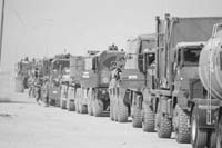Hacia las seis de la mañana de ayer, los últimos soldados españoles salieron de Diwaniya, sede de su cuartel general en Irak durante los últimos diez meses. La noche anterior, el jefe del Contingente de Apoyo al Repliegue Español (Conapre), el general de brigada José Muñoz, entregó a las fuerzas estadounidenses el mando de la hasta ahora denominada Base España, completando así el traspaso de las instalaciones. Por razones de seguridad, el gigantesco convoy se distribuyó en dos líneas de marcha, de unos 40 vehículos cada una, separadas entre sí por unos 50 kilómetros de distancia. Otros 30 Blindados Medios sobre Ruedas (BMR), del Grupo Táctico de la Legión, y Vehículos de Exploración de Caballería (VEC), del Escuadrón Ligero de Caballería, se encargaban de prestarles protección.