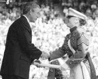 Frente a un auditorio de graduados de la primera clase posatentados de septiembre de la academia militar West Point de Nueva York, Bush, advirtió que “los peligros no han pasado porque sabemos que los terroristas tienen más dinero, más hombres y más planes”. El presidente norteamericano, anticipado a los desafíos del mañana, señaló que se le pediría a los cadetes perseguir a los terroristas escondidos por todo el mundo y evitar que los enemigos de Estados Unidos adquieran armas nucleares, químicas y biológicas. Bush tácitamente se refirió a Irak, cuando enfatizó que “no podemos poner nuestra fe en las palabras de tiranos que solemnemente firman tratados de no proliferación y después los rompen sistemáticamente”. “Si esperamos que las amenazas se materialicen completamente, habremos esperado demasiado. Debemos llevar la batalla al enemigo, interrumpir sus planes y enfrentar las peores amenazas antes de que éstas emerjan”. El jefe de gobierno estadounidense ha llamado a Irak “eje del mal” junto a Irán y Corea del Norte, afirmando que es un Estadoque amenaza con extender las armas de destrucción masiva, y que podría ser el próximo blanco de Estados Unidos en la guerra contra el terrorismo.