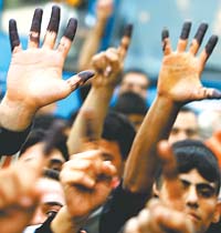 Dedos negros, marca de haber votado en las legislativas.