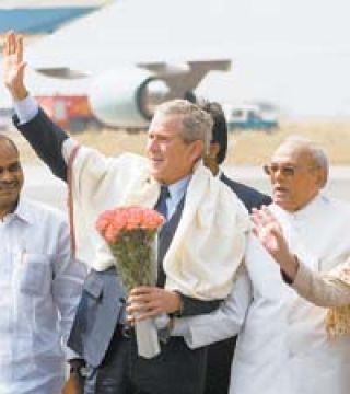 Pero si la propuesta fue aceptada con placer por el establishment indio, ayer en las calles los avances estadounidenses eran rechazados furiosamente. Antes de su discurso, Bush voló al sur para una visita a la ciudad de Hyderabad. Pero incluso mientras visitaba una escuela de negocios y un colegio agrícola, a algunos kilómetros de allí la policía luchaba con manifestantes que lanzaban piedras en protesta de la visita de Bush. Gran parte de la ciudad estaba paralizada por una huelga, banderas negras flameaban sobre la vieja ciudad y carteles colgados en la calle decían: “Bush go home”. Las protestas en Hyderabad fueron alimentadas por el hecho de que el 40 por ciento de la población de la ciudad es musulmana: muchos de los participantes llevaban carteles de Osama bin Laden.