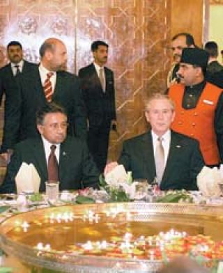 La visita del presidente Bush estuvo reducida al palacio presidencial en Islamabad y a una embajada norteamericana fuertemente fortificada, donde pasó la noche. Hubo cuatro intentos de asesinato de Musharraf y tan sólo dos días atrás un diplomático norteamericano murió en un ataque suicida en el Consulado estadounidense de Karachi. En lugar de visitar el sitio del terremoto del año pasado, a Bush le mostraron una película del mismo dentro del palacio. Niños paquistaníes fueron llevados al interior del palacio para hacer una representación de una clase para la primera dama, Laura Bush. El presidente Musharraf y el establishment paquistaní pueden ser amigables con Estados Unidos, pero en las calles el sentimiento antiestadounidense es intenso. Bush hizo su visita tan sólo unas semanas después de que un ataque aéreo norteamericano en un pueblo paquistaní –que buscaba asesinar al segundo de Al Qaida, Ayman al Zawahiri– matara a 14 civiles, incluyendo varios niños. También ha habido manifestaciones contra las caricaturas danesas del profeta Mahoma que se han tornado antinorteamericanas.