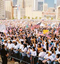 Tras la manifestación del 1º de abril, que sorprendió por la cantidad de gente en Los Angeles, los inmigrantes del resto de la nación se lanzaron a la calle. Sólo en San Diego fueron medio millón el domingo. Ayer, la marcha neoyorquina superó todos los sueños de los organizadores, y las pesadillas de los más xenófobos. El Senado había fracasado el viernes último en el tratamiento de una ley que pretendía darles posibilidades de legalización, aunque a sólo un pequeño porcentaje de los 12 millones –según cifras oficiales– de indocumentados que viven en los Estados Unidos. El debate ya tiene meses y lo comenzaron los republicanos que preaprobaron la ley HR4437 en la Cámara de Representantes. Se trata de un proyecto que criminaliza la migración considerando a aquellos que no tienen papeles un peligro terrorista para el país. La penalización de los migrantes es inminente si avanza el proyecto llamado Ley para la protección fronteriza, antiterrorismo y control de la migración en el Senado. Las organizaciones se nuclearon para plantear el camino opuesto: una amnistía general que permita regularizar sus situaciones. Así las cosas, la paradoja de un país bipartidista a ultranza es que tras años de silencio un nuevo actor político surge de la ilegalidad. “El gigante se despierta”, resumen los medios latinos. Y no habla sólo español. Ayer el chino, el coreano, el árabe y los veinte tonos de castellano en sus variantes latinoamericanas coreaban las mismas consignas.