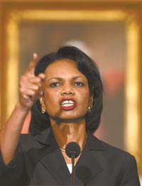 El gobierno de Irán tenía una elección, dijo Rice. Podría continuar su postura de desafío y “sufrir grandes costos” o podría trabajar hacia una solución, al detener todas las actividades de enriquecimiento y reprocesamiento, y cooperar totalmente con la AIEA, la agencia de control de la ONU. En cuanto Irán “total y tangiblemente” suspenda sus actividades de enriquecimiento y de reprocesamiento, “Estados Unidos irá a la mesa con nuestros tres colegas de Europa y se reunirán con los representantes de Irán”. Si sucede, serían las primeras negociaciones formales directas en un cuadro de trabajo internacional desde que los dos países rompieron relaciones después de la revolución islámica de 1979.