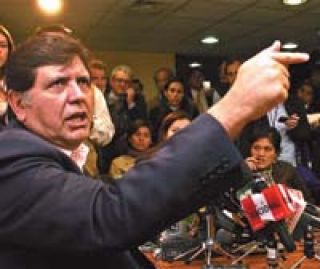 García, convencido de que su confrontación con Chávez lo ayuda electoralmente, ayer se volvió a despachar ampliamente en sus críticas al presidente. Aseguró que el venezolano “tiene una estrategia para dominar Bolivia, Perú a través de Humala y Ecuador a través de Lucio Gutiérrez, y así cercar a Colombia, que es su objetivo estratégico”. García también habló de otras cosas. Aseguró que los peruanos están “en la antesala de gritar que se vayan todos” y que para evitarlo él se propone “dinamitar el sistema político desde adentro, terminando con los privilegios excesivos y bajando los sueldos de los funcionarios públicos para que la gente vea que si hay dificultades no hay privilegiados”. Amenazó con cerrar el Congreso –en el cual el partido aprista tendrá solamente 36 de las 120 bancas– si los congresistas se negaban a bajarse los sueldos y a implementar los cambios políticos que asegura propondrá “para reducir privilegios”. “Si la clase política no actúa el pueblo gritará que se vayan todos, pero yo me encargaré de que no griten que se vaya Alan García, porque dejaré muy claro desde el primer día que yo sí quiero el cambio”, señaló.