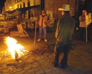 Ante el escenario de posible represión, la APPO reforzó ayer sus campamentos y hace acopio de piedras y palos en sus barricadas, considerando que un buen número de sus militantes abandonaron la ciudad y marchan desde el jueves pasado hacia la capital del país.