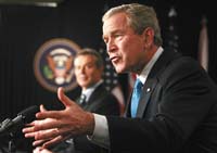 Los dos señalaron asimismo que el éxito del conflicto iraquí depende del éxito de una batalla mucho más amplia, la de los moderados y los defensores de la libertad contra los extremistas y los partidarios del sectarismo en todo Medio Oriente. “El primer ministro Blair y yo sabemos que tenemos la responsabilidad de liderar y apoyar a los moderados y reformistas que trabajan por un cambio en el gran Medio Oriente”, aseguró Bush.