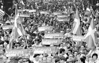 Los carteles anaranjados del partido separatista radical vasco Batasuna comenzaron a aparecer a los costados del camino a pocos kilómetros del pequeño pueblo de Etxarri-Aranatz. También aparecen los graffiti alabando al grupo separatista armado ETA y lanzando su furia al gobierno español, que hoy se anotará un triunfo cuando el Congreso español inicie el proceso para proscribir a Batasuna. El primer ministro, José María Aznar, ha llamado de regreso a los diputados de sus vacaciones de verano para una sesión de emergencia, hoy, en el Parlamento. Se espera que la mayoría vote para establecer una corte especial para decidir si Batasuna debería estar proscripto por apoyar tácitamente a ETA, cuyos terroristas han matado a más de 800 personas en 30 años.