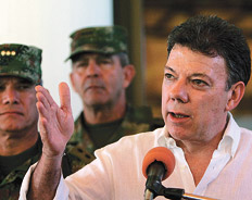Por otra parte, Chávez calificó al ministro Santos como una “peligrosa amenaza” para la paz de la región y “enemigo número uno de la integración de nuestros pueblos”. Según el mandatario, Santos “está totalmente subordinado a Washington y eso es muy peligroso para la paz de este continente”, sobre todo porque “quiere ser presidente de Colombia, se le ve en los ojos la ambición de poder”.