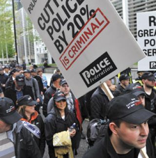Cientos de miles de trabajadores estatales fueron a la huelga en el Reino Unido en protesta contra la reforma jubilatoria y el programa de ajuste gubernamental. Esta vez los trabajadores contaron con el beneplácito y hasta el apoyo explícito de la policía (foto). Y es que unos 30 mil efectivos policiales usaron su día de licencia para manifestarse en el centro de Londres contra el programa de austeridad y la privatización encubierta de la fuerza policial.