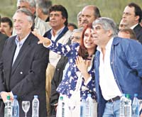 “Todavía falta mucho por hacer”, señaló Moyano, aunque afirmó que se “está recuperando el nivel histórico de los salarios” y se encolumnó detrás del Gobierno: “Perón nos decía que cuando la patria está en peligro, ningún argentino puede rehuir la lucha. Y no-sotros le decimos compañera Presidenta, que estamos en momentos de definiciones para decidir qué es lo que queremos los argentinos: o seguimos con un proyecto nacional y popular o vuelven los que nos llevaron al desastre en la década del ’90”.