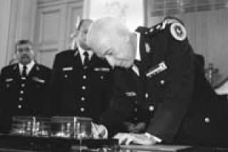 Su primera medida fue una señal de endurecimiento frente al conflicto social: recreó los cuerpos antimotines, que se habían ido disolviendo desde finales de la dictadura. Simultáneamente, coincidieron dos funcionarios vinculados al área de seguridad del Gobierno, en una iniciativa menos visible, pero de consecuencias más vastas Giacomino se concentró en reforzar la inteligencia de la Federal.